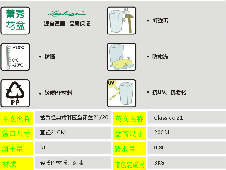 德國(guó)進(jìn)口高檔蕾秀花盆經(jīng)典矮胖圓型